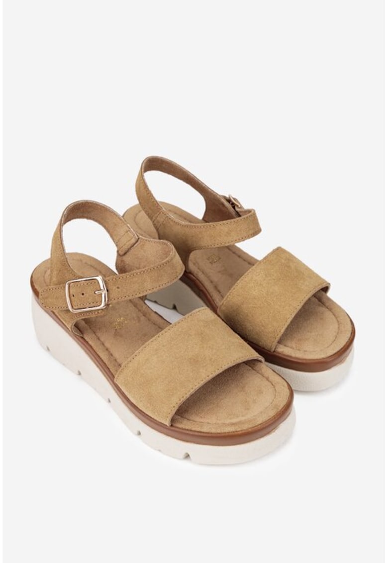 Caracteristici Culoare: maro deschis Material: piele intoarsa Stil: casual Varf: rotund Sistem inchidere: catarama Compozitie Partea superioara: piele intoarsa