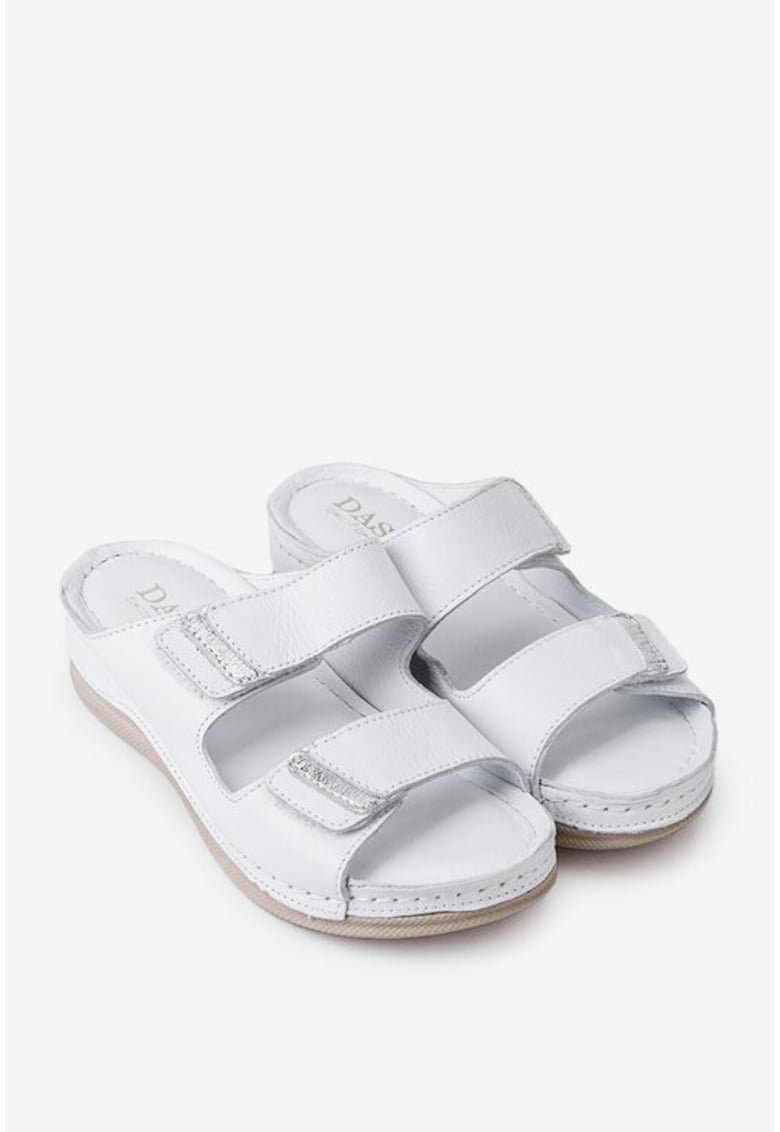 Caracteristici Tip: cu talpa joasa Culoare: alb Material: piele naturala Stil: casual Varf: rotund Tip talpa: demi-wedge Sistem inchidere: velcro Compozitie Partea superioara: piele naturala Material interior: piele naturala