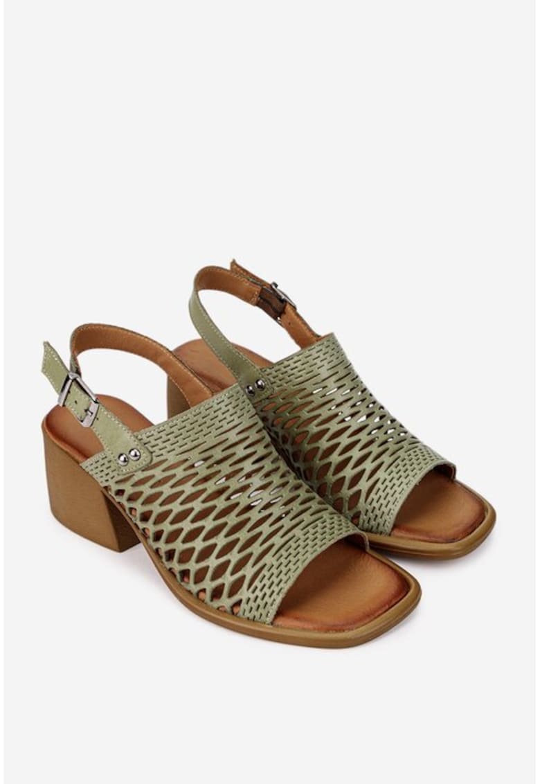 Specification: Sandale dama verzi din piele naturala cu model perforat