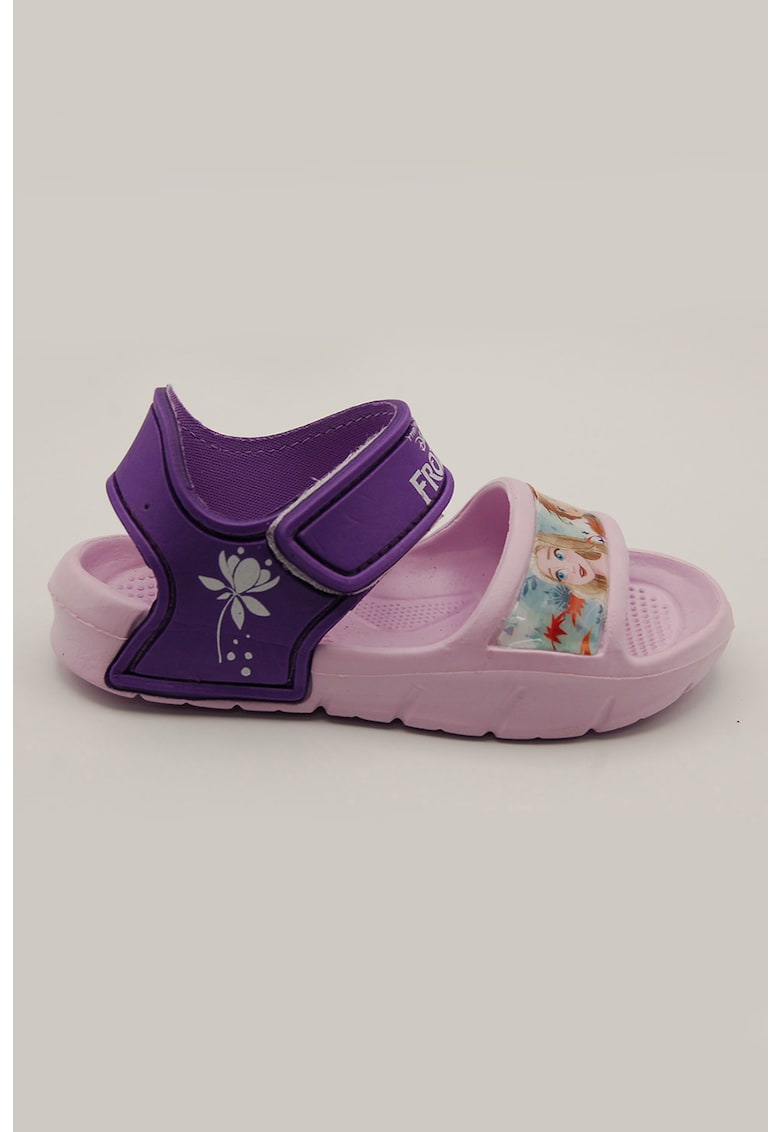 Caracteristici Culoare: lila Stil: casual Imprimeu: grafic Material: cauciuc Poveste/Personaj: frozen Varf: deschis Sistem inchidere: velcro Tip talpa: plata Detalii: doua nuante Compozitie Partea superioara: alte materiale Material interior: alte materiale Material talpa: alte materiale