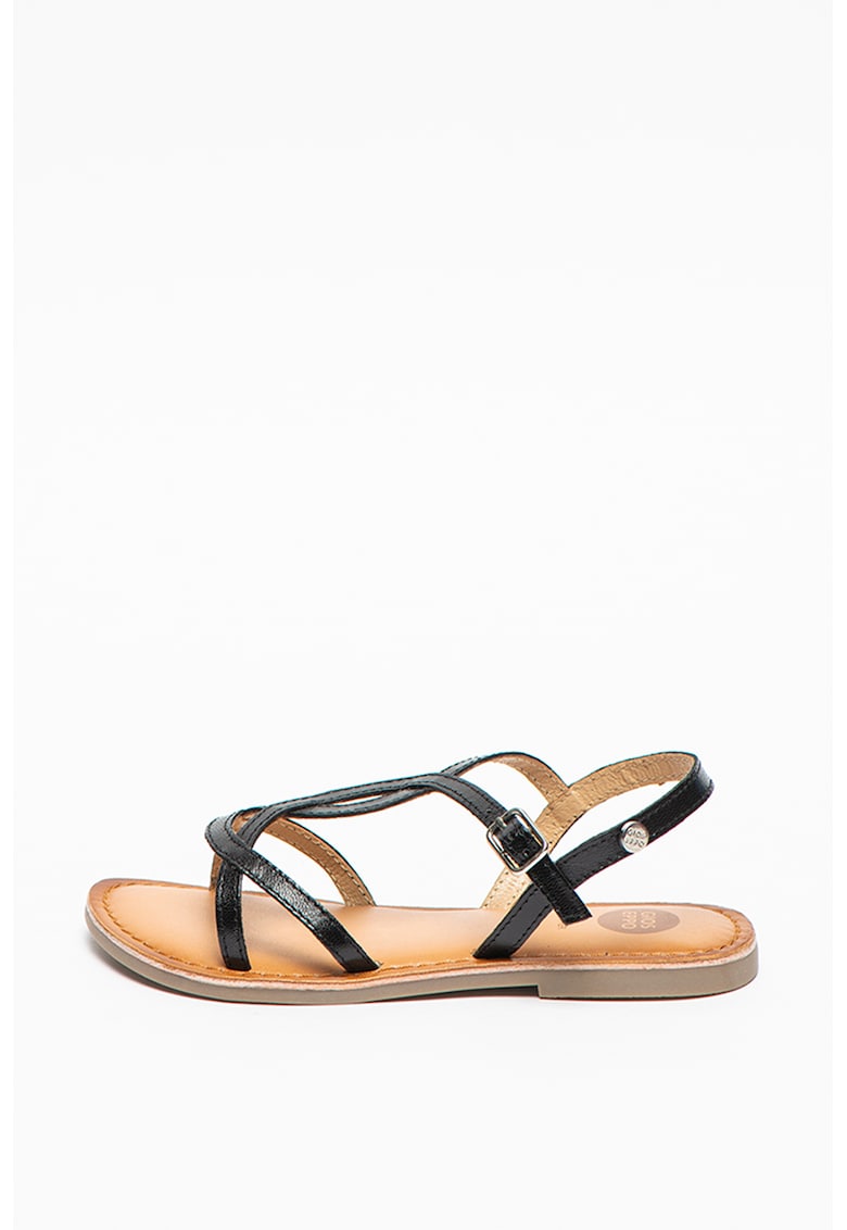 Caracteristici Culoare: negru Imprimeu: uni Material: piele naturala Sistem inchidere: catarama Tip talpa: plata Compozitie Partea superioara: piele Material interior: piele Material talpa: alte materiale