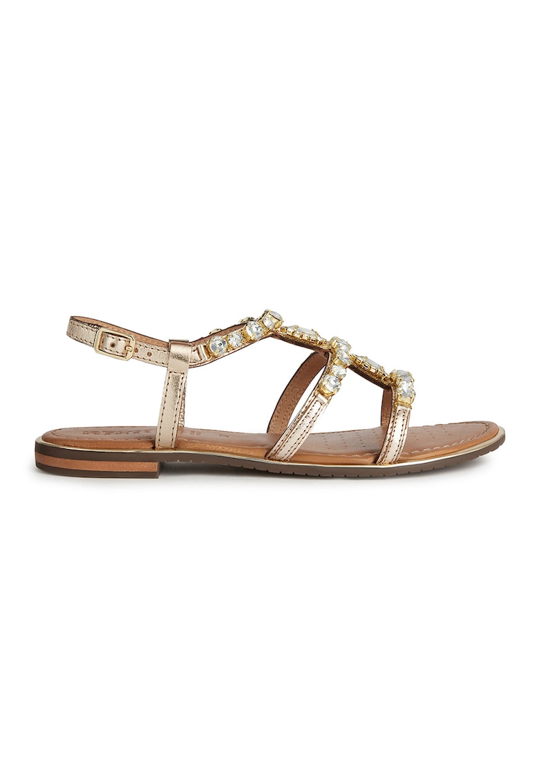 Caracteristici Tip: cu talpa joasa Culoare: auriu Material: piele naturala Imprimeu: uni Stil: casual Varf: rotund Tip talpa: plata Tehnologie: geox respira® Detalii: brant cu amortizare – aplicatii din strasuri Sistem inchidere: catarama Compozitie Partea superioara: piele Material interior: piele Material talpa: alte materiale