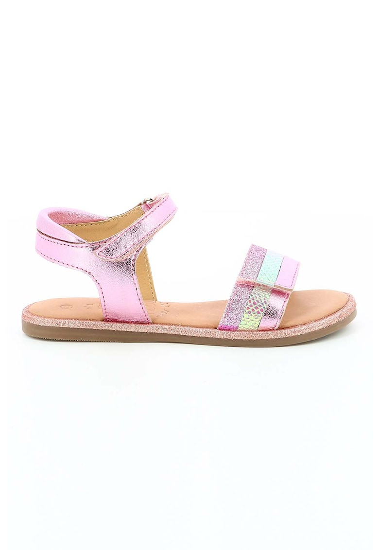 Caracteristici Culoare: roz Stil: casual Imprimeu: uni Material: sintetic – piele naturala Varf: deschis – rotund Sistem inchidere: velcro Tip talpa: plata Detalii: banda velcro pentru ajustare – aspect metalizat Compozitie Partea superioara: piele – alte materiale Material interior: alte materiale Material talpa: alte materiale Material brant: piele