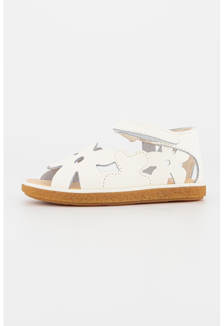 Caracteristici Culoare: alb Imprimeu: uni Material: piele naturala Sistem inchidere: velcro Tip talpa: plata Detalii: decupaje Compozitie Partea superioara: piele Material interior: piele Material talpa: alte materiale