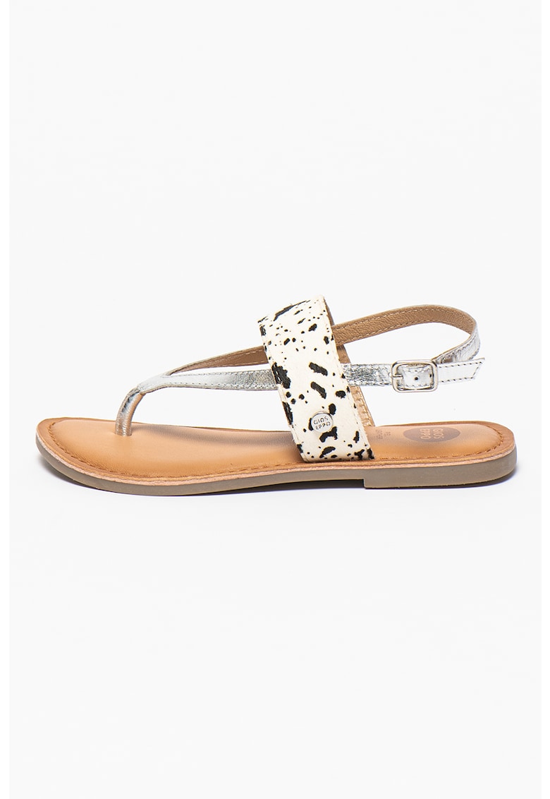 Sandale de piele cu insertie de piele cu par scurt si bareta separatoare Purnia