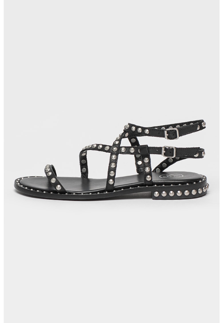 Caracteristici Tip: cu talpa joasa Culoare: negru – argintiu Material: piele naturala Imprimeu: uni Stil: casual Tip talpa: plata Culoare elemente metalice: argintiu Detalii: aplicatii cu tinte Sistem inchidere: catarama Compozitie Partea superioara: piele Material interior: piele Material talpa: alte materiale