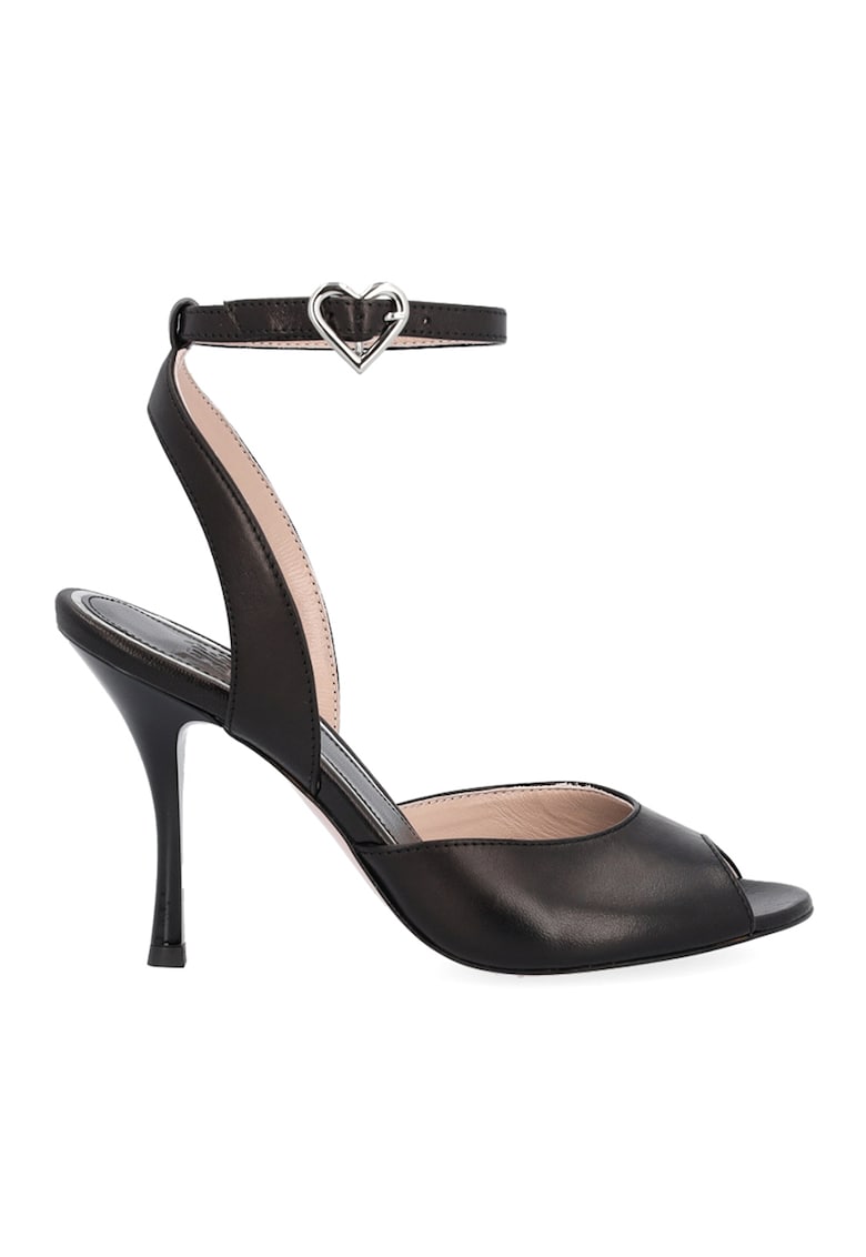 Sandale de piele cu toc inalt si catarama in forma de inima