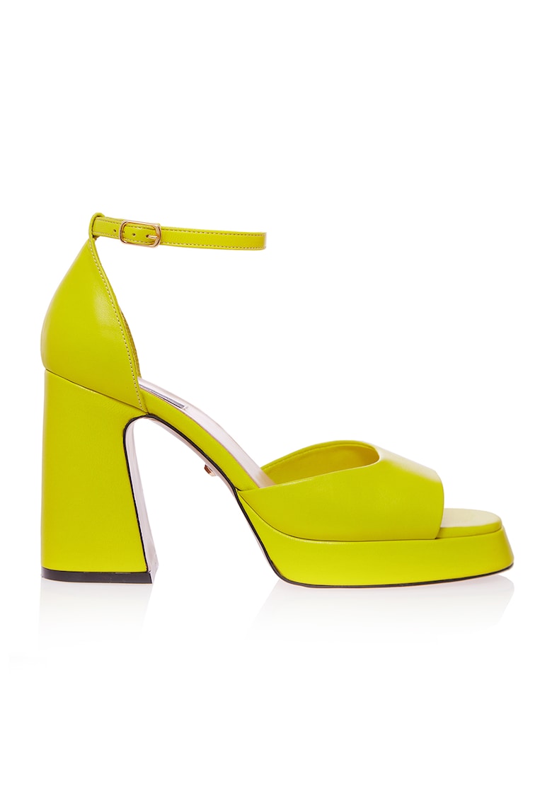 Caracteristici Tip: cu toc Culoare: verde neon Material: piele naturala Imprimeu: uni Stil: casual Tip toc: masiv Culoare elemente metalice: auriu Sistem inchidere: catarama Compozitie Partea superioara: piele Material interior: piele Material talpa: alte materiale Dimensiuni Inaltime toc: 11 cm