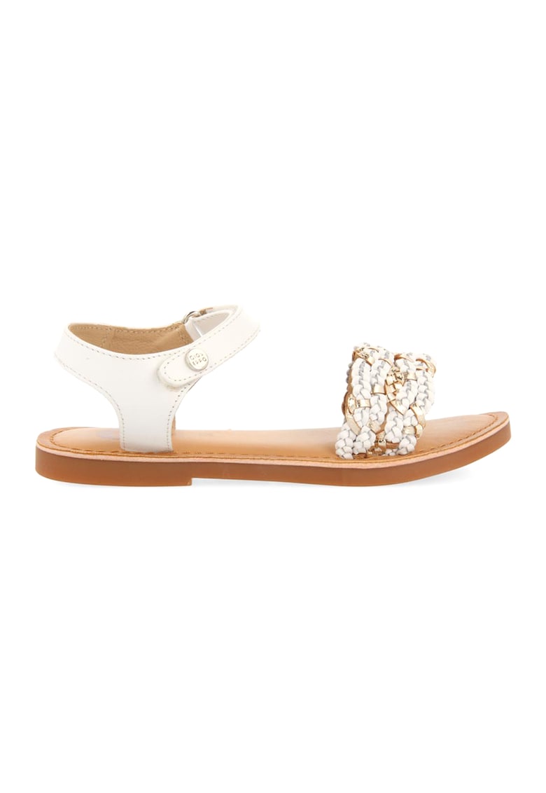 Caracteristici Culoare: alb Stil: casual Imprimeu: uni Material: piele naturala Varf: deschis Sistem inchidere: velcro Tip talpa: plata Compozitie Partea superioara: piele Material interior: piele Material talpa: alte materiale