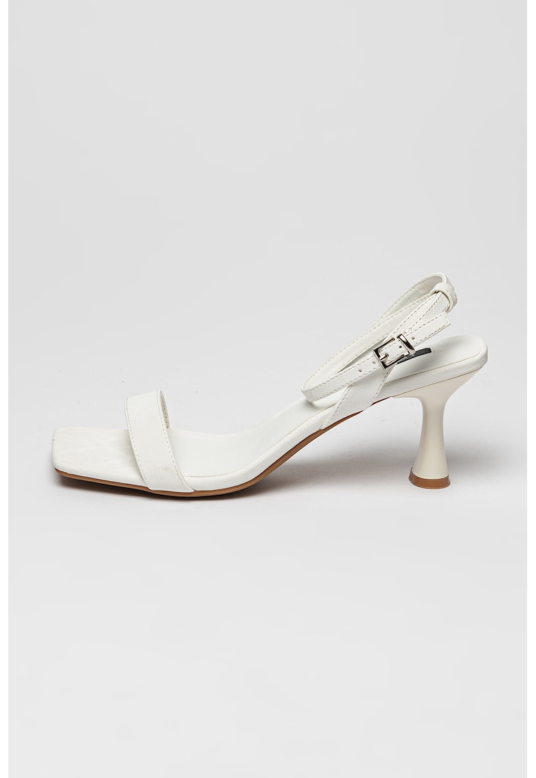 Caracteristici Tip: cu toc Culoare: alb optic Material: piele ecologica Imprimeu: uni Stil: elegant Tip toc: clasic Culoare elemente metalice: argintiu Sistem inchidere: catarama Compozitie Partea superioara: alte materiale Material interior: alte materiale Material talpa: alte materiale Dimensiuni Inaltime toc: 7 cm