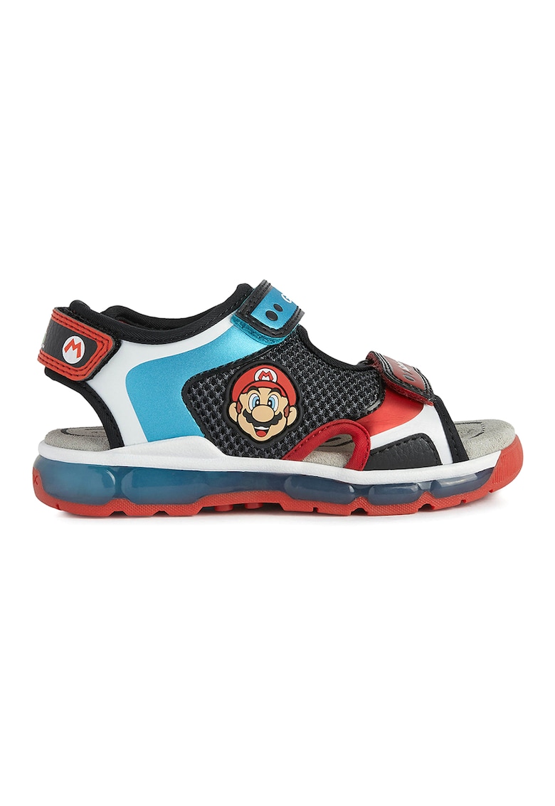 Sandale de piele ecologica cu velcro si detalii cu desene