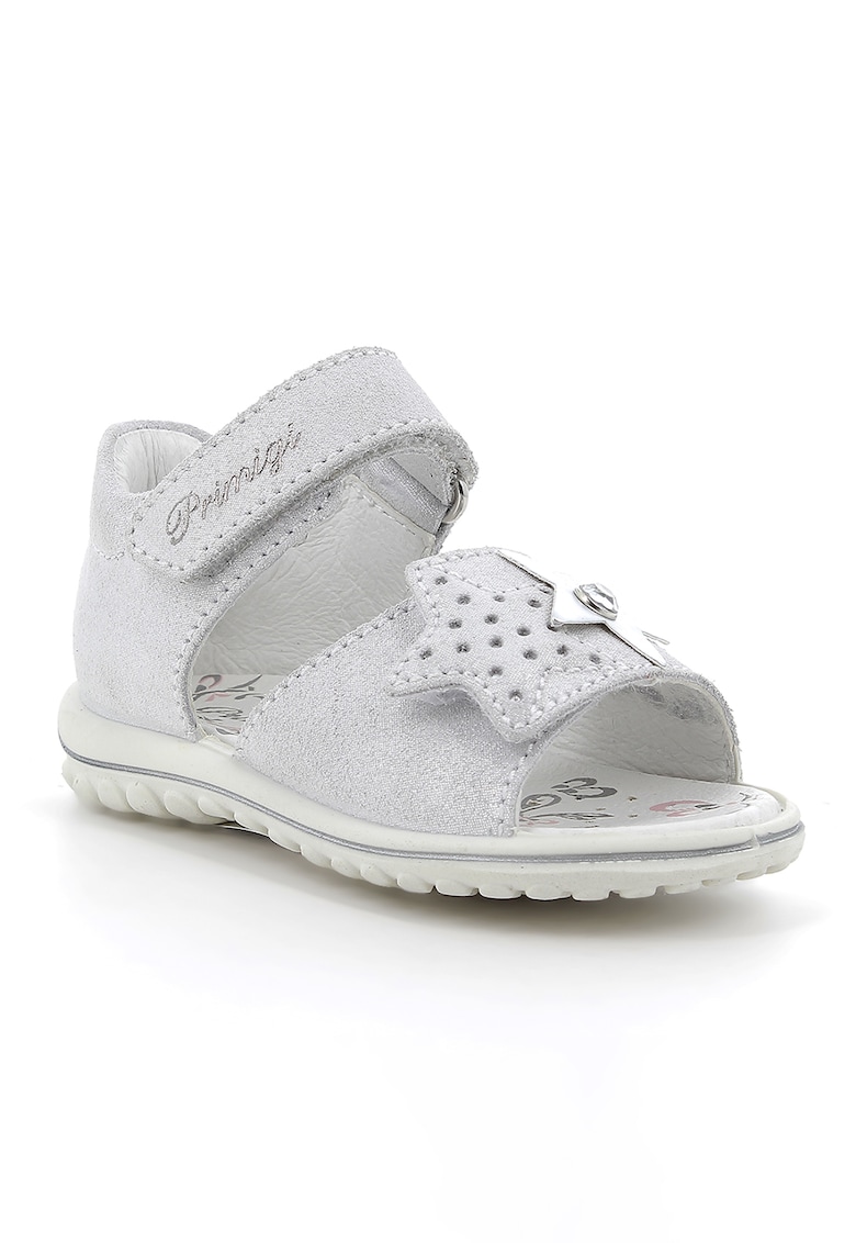 Caracteristici Culoare: gri deschis Stil: casual Imprimeu: uni Material: piele intoarsa Varf: deschis Sistem inchidere: velcro Tip talpa: plata Detalii: aplicatii cu stele Compozitie Partea superioara: piele intoarsa peliculizata Material interior: piele Material talpa: alte materiale