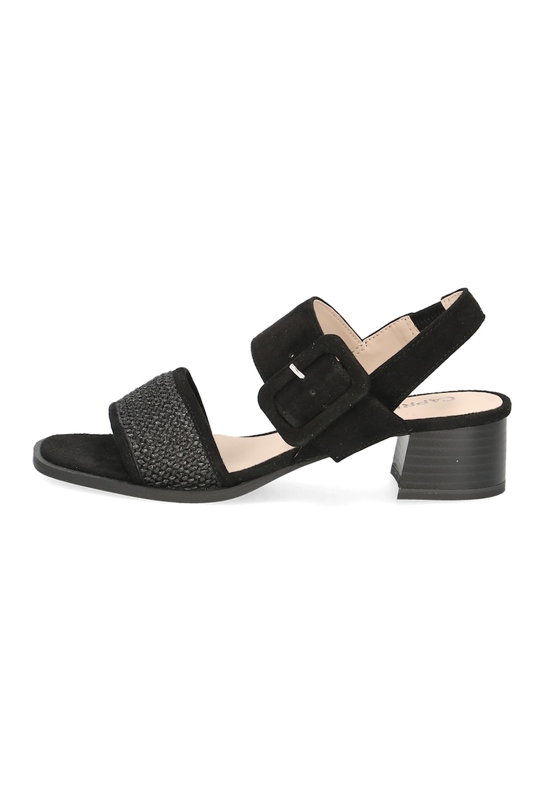 Sandale de piele intoarsa si material textil cu toc masiv