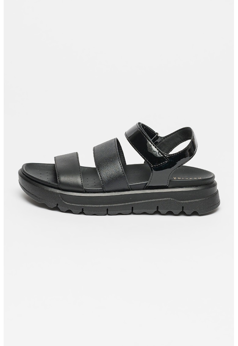 Caracteristici Tip: cu platforma Culoare: negru Material: piele naturala Imprimeu: uni Stil: casual Tip talpa: wedge Tehnologie: geox respira Sistem inchidere: velcro Compozitie Partea superioara: piele – alte materiale Material interior: alte materiale – piele Material talpa: alte materiale Dimensiuni Platforma spate: 4 cm