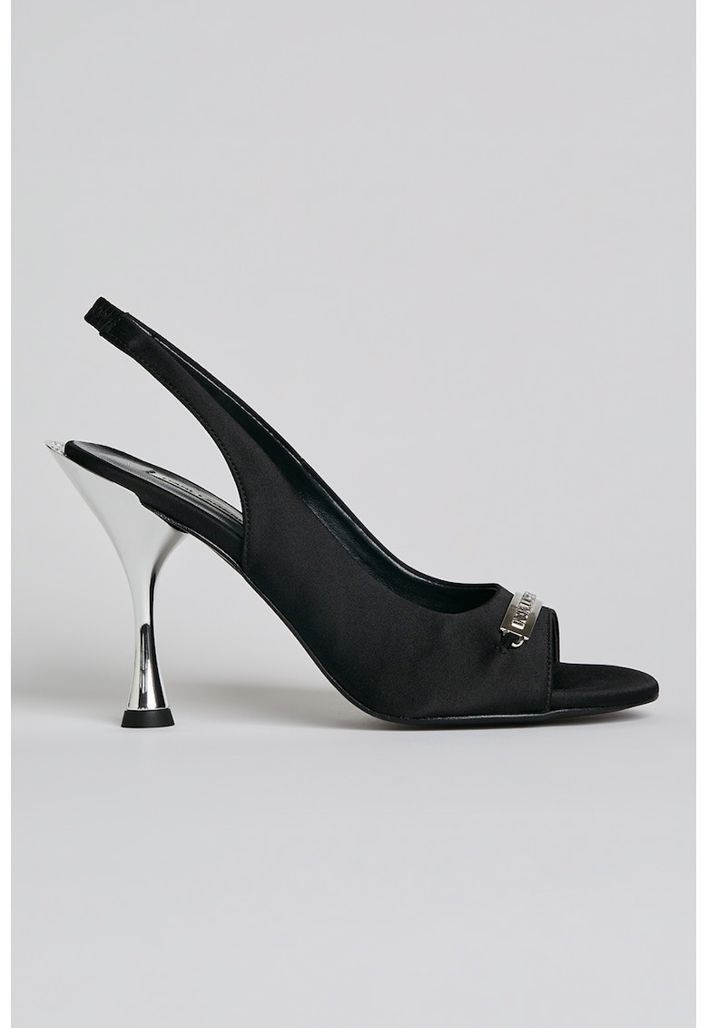 Caracteristici Tip: cu toc Culoare: negru Material: textil Imprimeu: logo Stil: elegant Tip toc: clasic Sistem inchidere: fara inchidere Compozitie Partea superioara: textil Material interior: piele de capra Material talpa: alte materiale Dimensiuni Inaltime toc: 10 cm