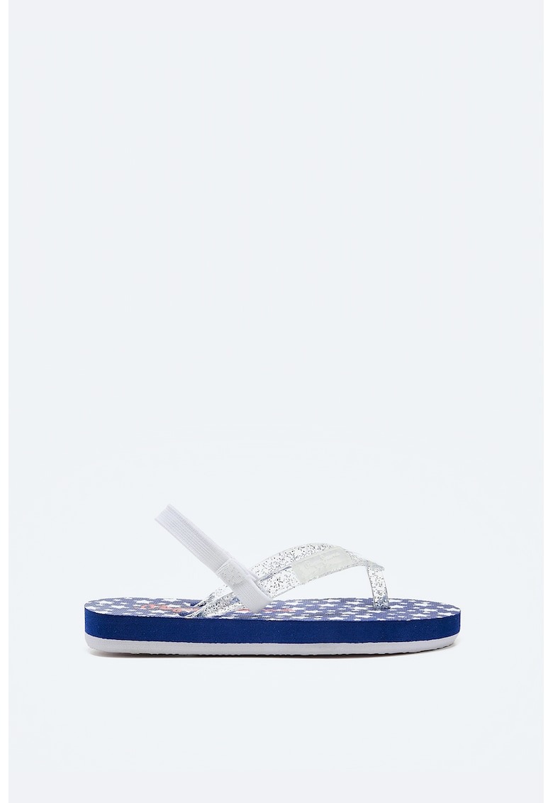 Caracteristici Culoare: rosu – alb optic – bleumarin Material: sintetic – cauciuc Tip talpa: plata Compozitie Partea superioara: alte materiale Material interior: alte materiale Material talpa: alte materiale