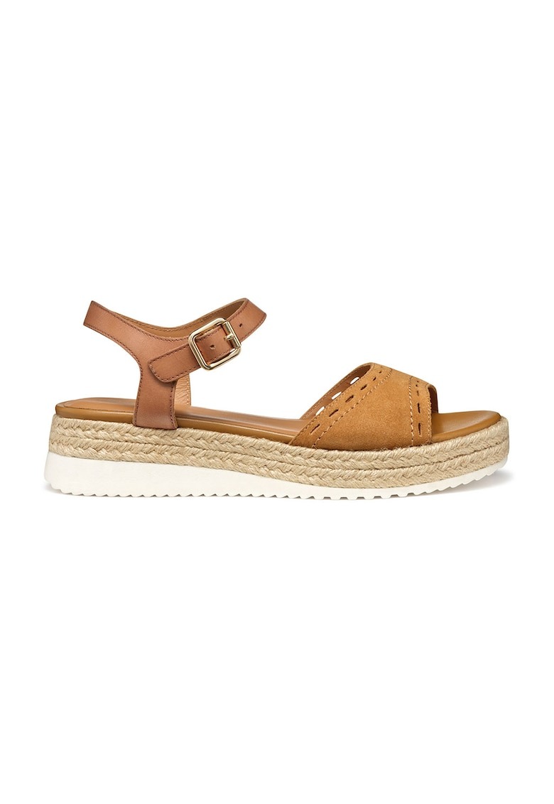 Sandale din piele cu talpa cu platforma si garnituri din piele intoarsa