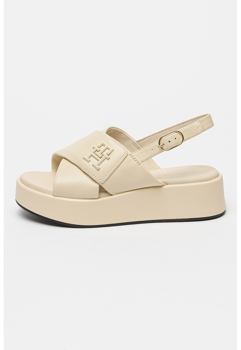 Specification: Sandale din piele cu talpa wedge si barete incrucisate