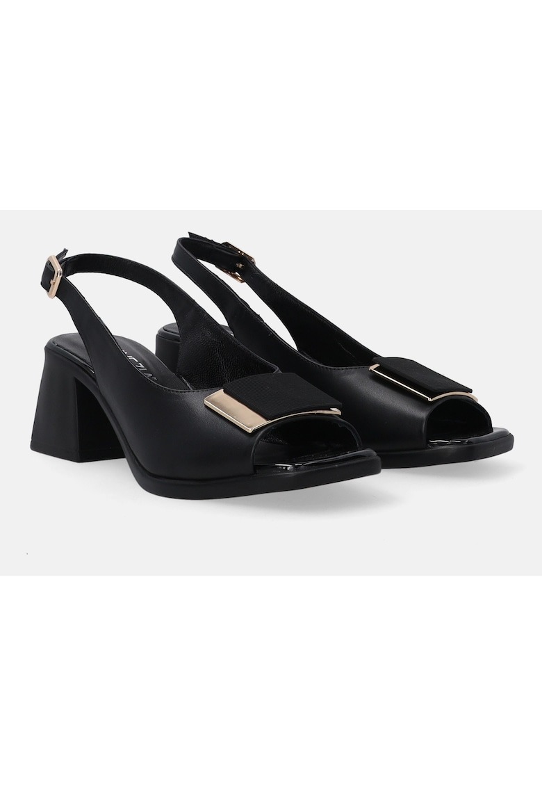 Sandale din piele cu toc masiv si cu detaliu geometric
