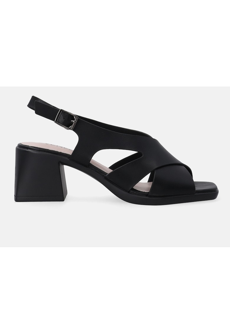 INCALTAMINTE/Sandale – Sandale din piele cu varf patrat si toc masiv