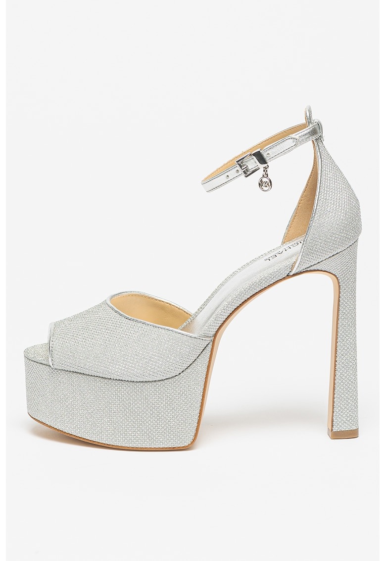 Caracteristici Tip: cu toc Culoare: argintiu Material: piele ecologica Stil: elegant Tip toc: masiv Culoare elemente metalice: argintiu Sistem inchidere: catarama Compozitie Partea superioara: alte materiale Material interior: alte materiale – piele Material talpa: alte materiale Dimensiuni Inaltime toc: 13 cm Platforma fata: 5 cm