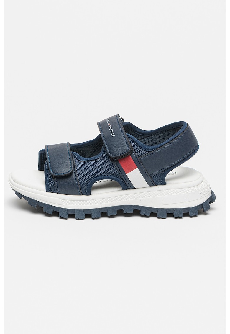 Sandale din piele ecologica cu talpa flatform si inchidere velcro