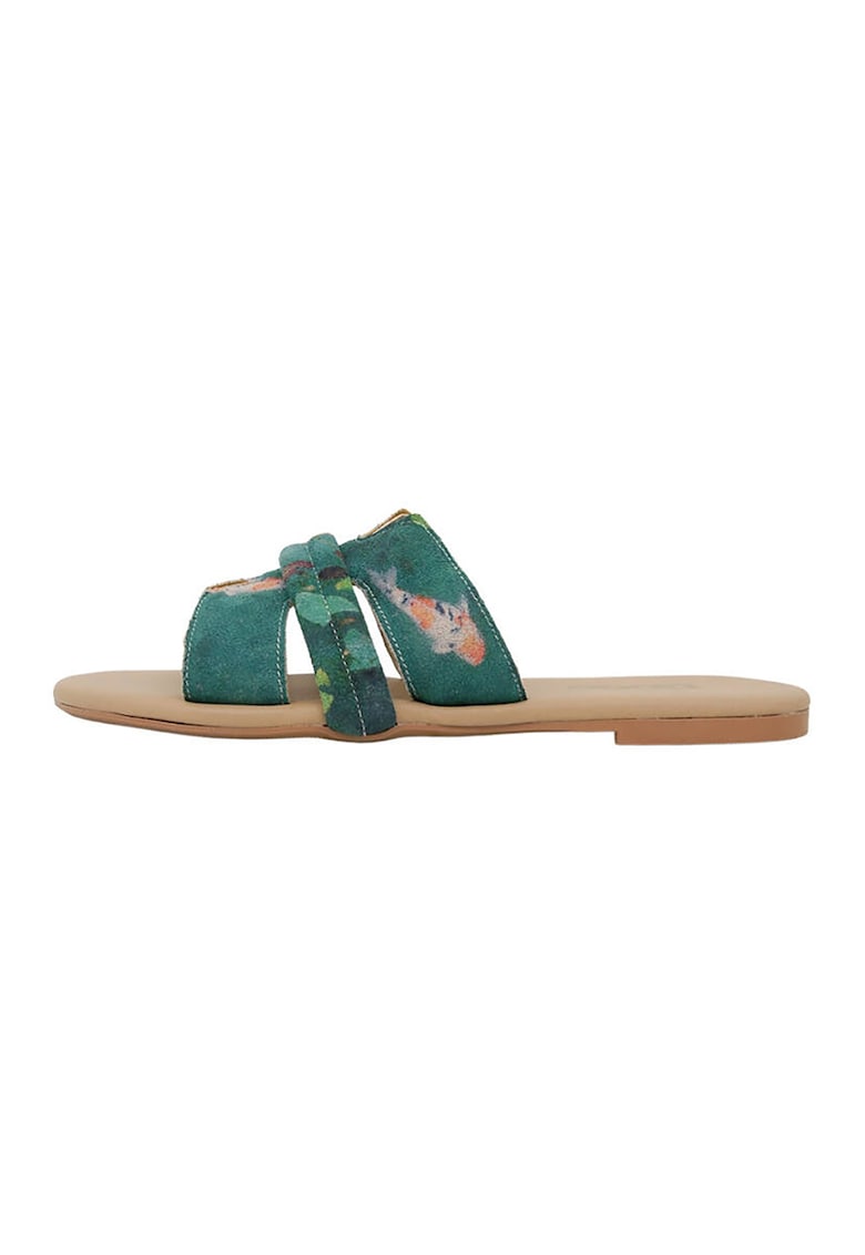 Caracteristici Tip produs: papuci Culoare: maro nisip – verde marin – roz Material: piele ecologica Stil: casual Imprimeu: cu model Varf: rotund Tip talpa: plata Detalii: produsul se poate curata folosind o carpa uda – nu introduceti produsul in masina de spalat sau in uscatorul de rufe. feriti produsul de lumina directa a soarelui. Compozitie Partea superioara: alte materiale Material interior: alte materiale Material talpa: alte materiale