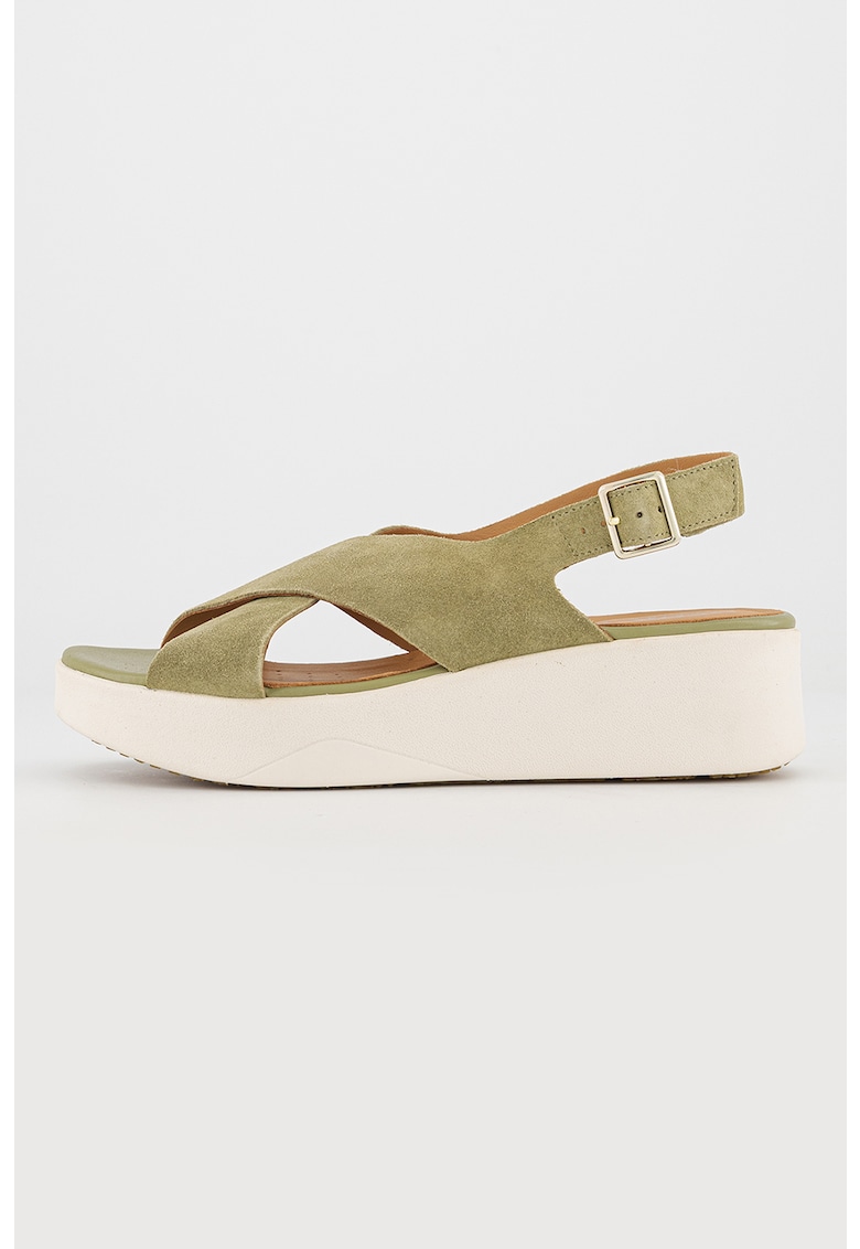 Specification: Sandale din piele intoarsa cu talpa wedge si bretele incrucisate Laudara