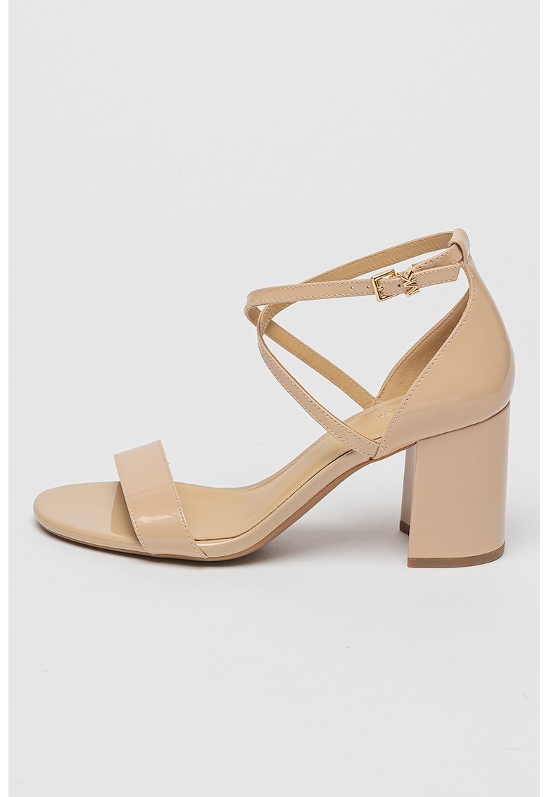 Caracteristici Tip: cu toc Culoare: bej Material: piele lacuita Imprimeu: uni Stil: elegant Tip toc: masiv Culoare elemente metalice: auriu Sistem inchidere: catarama Compozitie Partea superioara: piele Material interior: alte materiale Material talpa: alte materiale Dimensiuni Inaltime toc: 7.5 cm