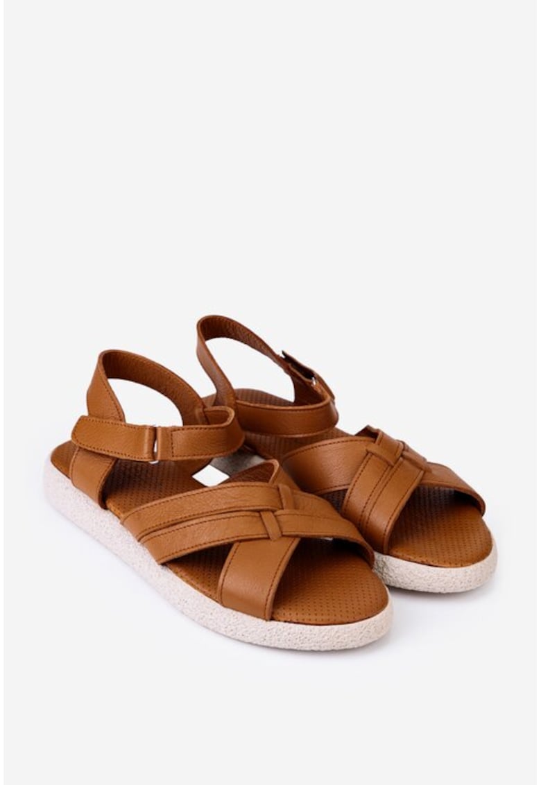 Specification: Sandale din piele maro cu inchidere scai