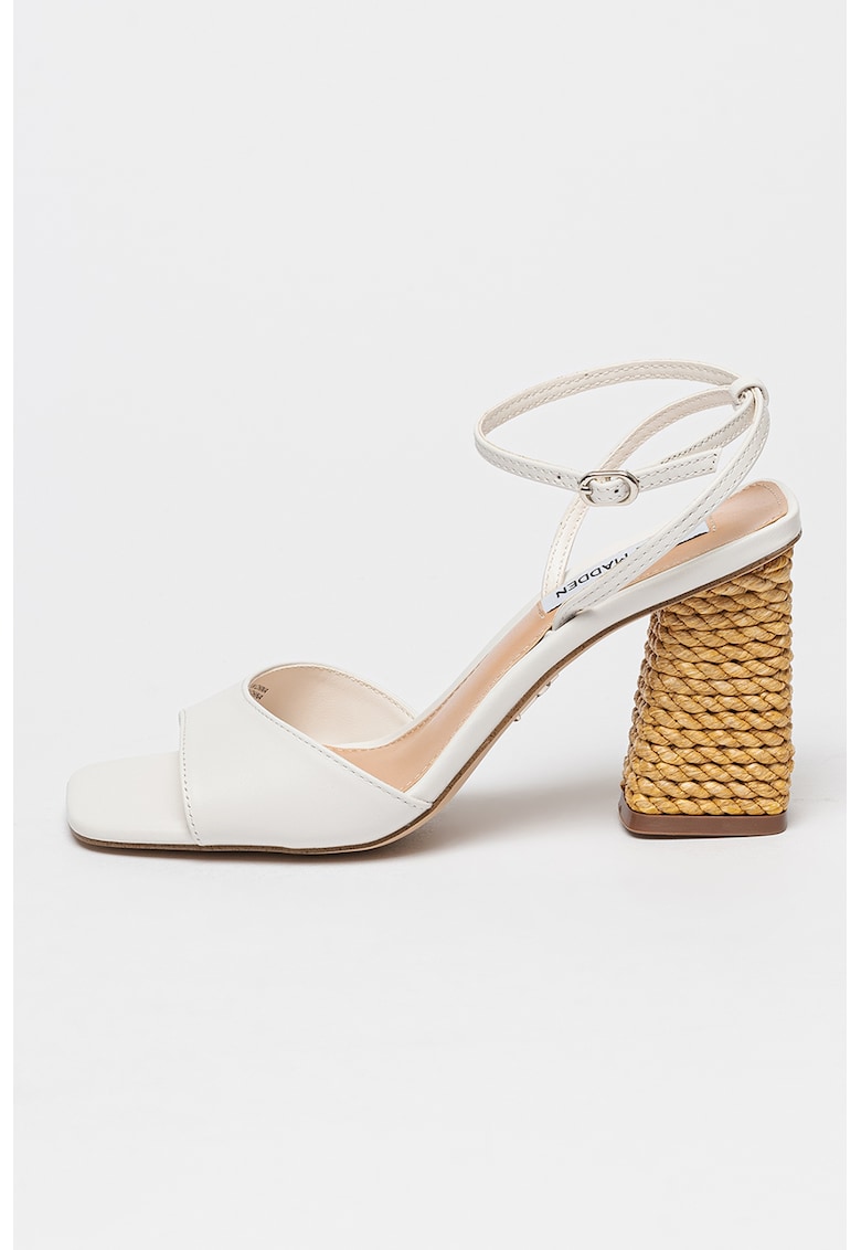 Caracteristici Tip: cu toc Culoare: alb – maro deschis Material: piele naturala Stil: casual Tip toc: masiv Culoare elemente metalice: argintiu Sistem inchidere: catarama Compozitie Partea superioara: piele Material interior: alte materiale Material talpa: alte materiale Dimensiuni Inaltime toc: 9.5 cm