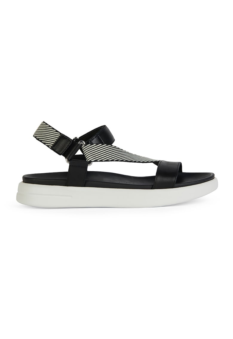 Caracteristici Tip: cu talpa joasa Culoare: negru – alb murdar Material: piele naturala Imprimeu: uni Stil: casual Tip talpa: wedge Tehnologie: geox respira® Culoare elemente metalice: argintiu Sistem inchidere: velcro Compozitie Partea superioara: piele – material textil Material interior: alte materiale Material talpa: alte materiale