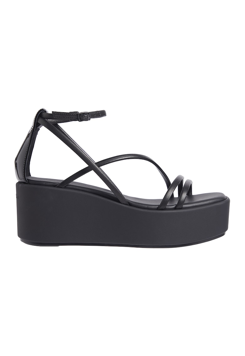 Specification: Sandale din piele si piele lacuita cu talpa wedge