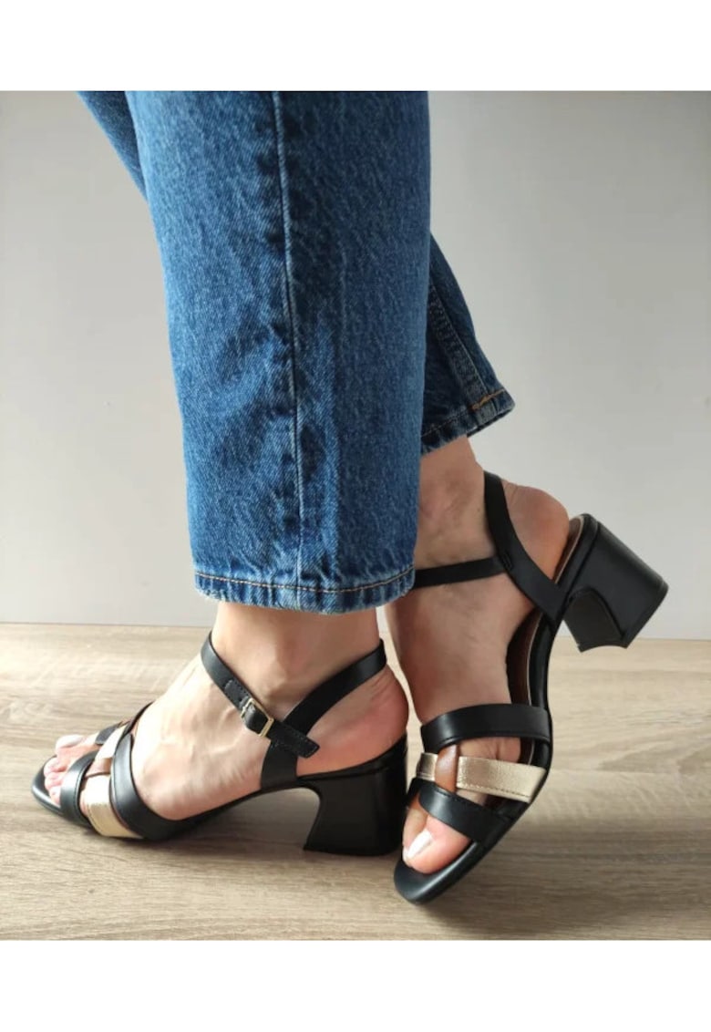 INCALTAMINTE/Pantofi clasici – Sandale Elegante Dama 28337-44 Negre Cu Auriu Si Maro – Negru –
