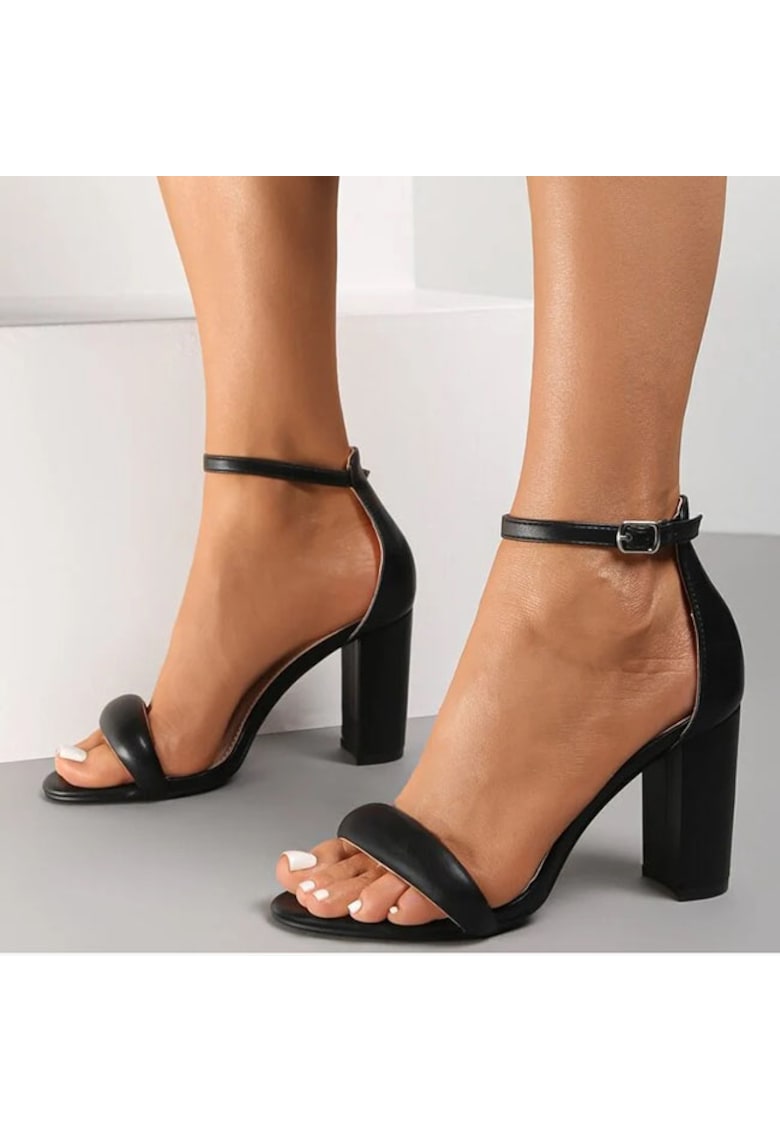Caracteristici Culoare: negru Material: piele ecologica Imprimeu: uni Stil: elegant Varf: rotund Sistem inchidere: catarama Compozitie Material interior: piele ecologica Dimensiuni Inaltime toc: 8.5 cm