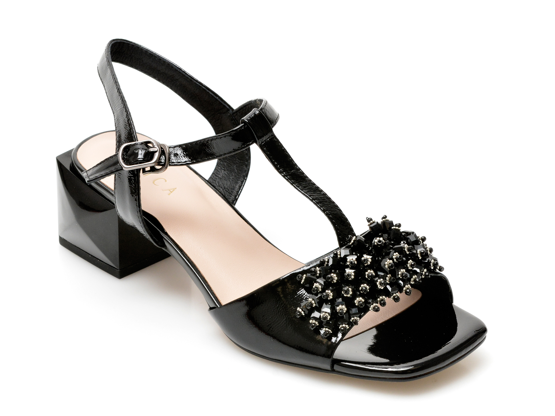 /femei/sandale dama/sandale dama cu toc – Sandale EPICA negre, H2681, din piele naturala lacuita