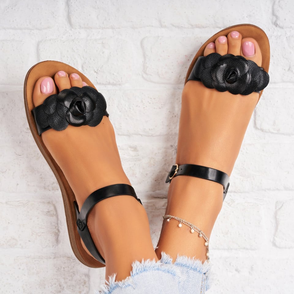 Sandale fără toc – Sandale fara Toc din Piele Ecologica dama Negre Cressida
