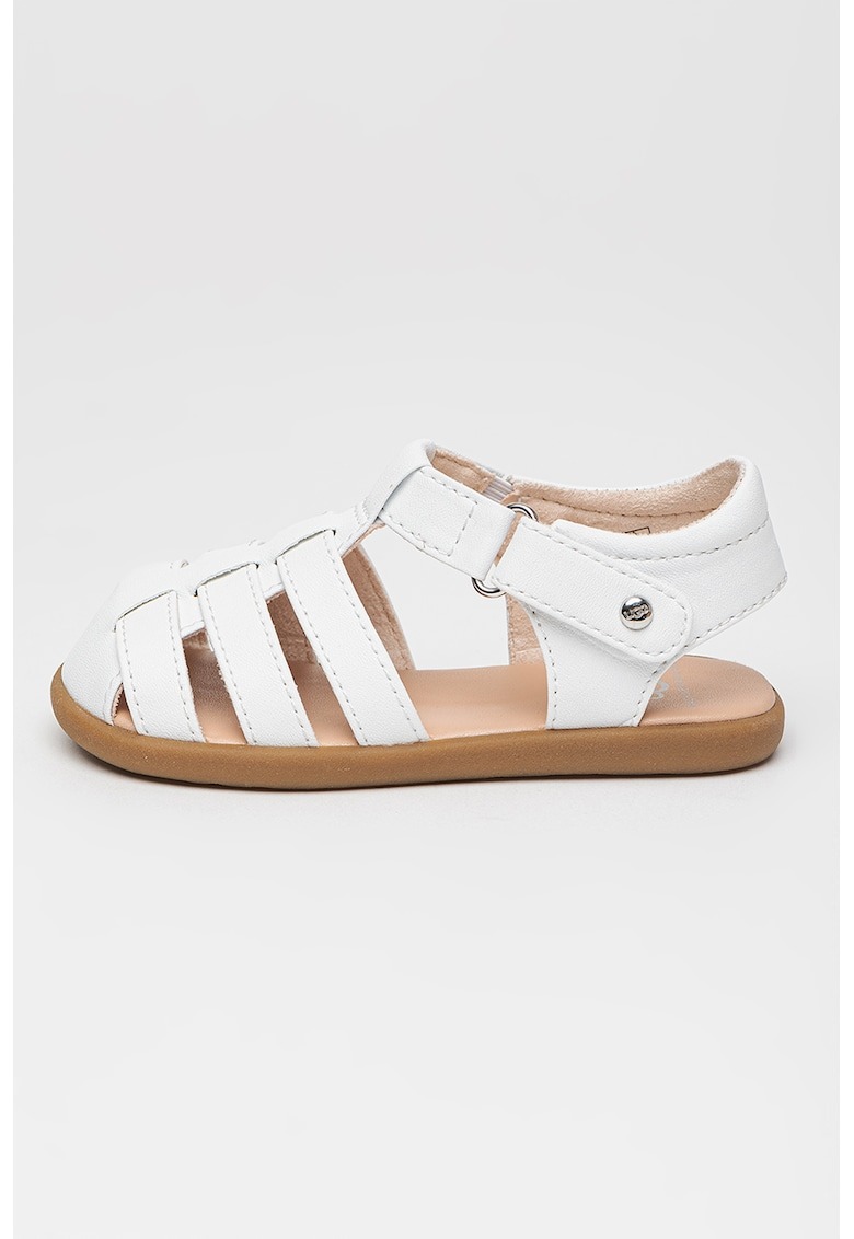 Caracteristici Culoare: alb Imprimeu: uni Material: piele ecologica Sistem inchidere: velcro Tip talpa: plata Compozitie Partea superioara: alte materiale Material interior: textil Material talpa: alte materiale