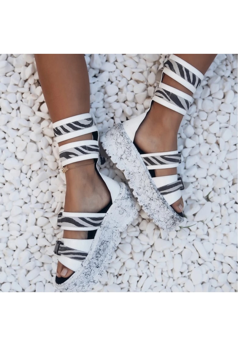 INCALTAMINTE/Sandale – Sandale flatform din piele Baby Zebra
