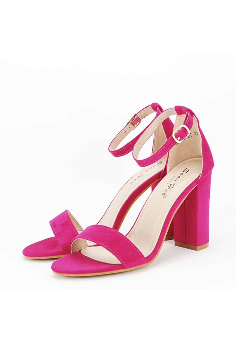 Caracteristici Culoare: fucsia Material: velur Imprimeu: uni Stil: elegant Varf: rotund Sistem inchidere: catarama Dimensiuni Inaltime toc: 10 cm