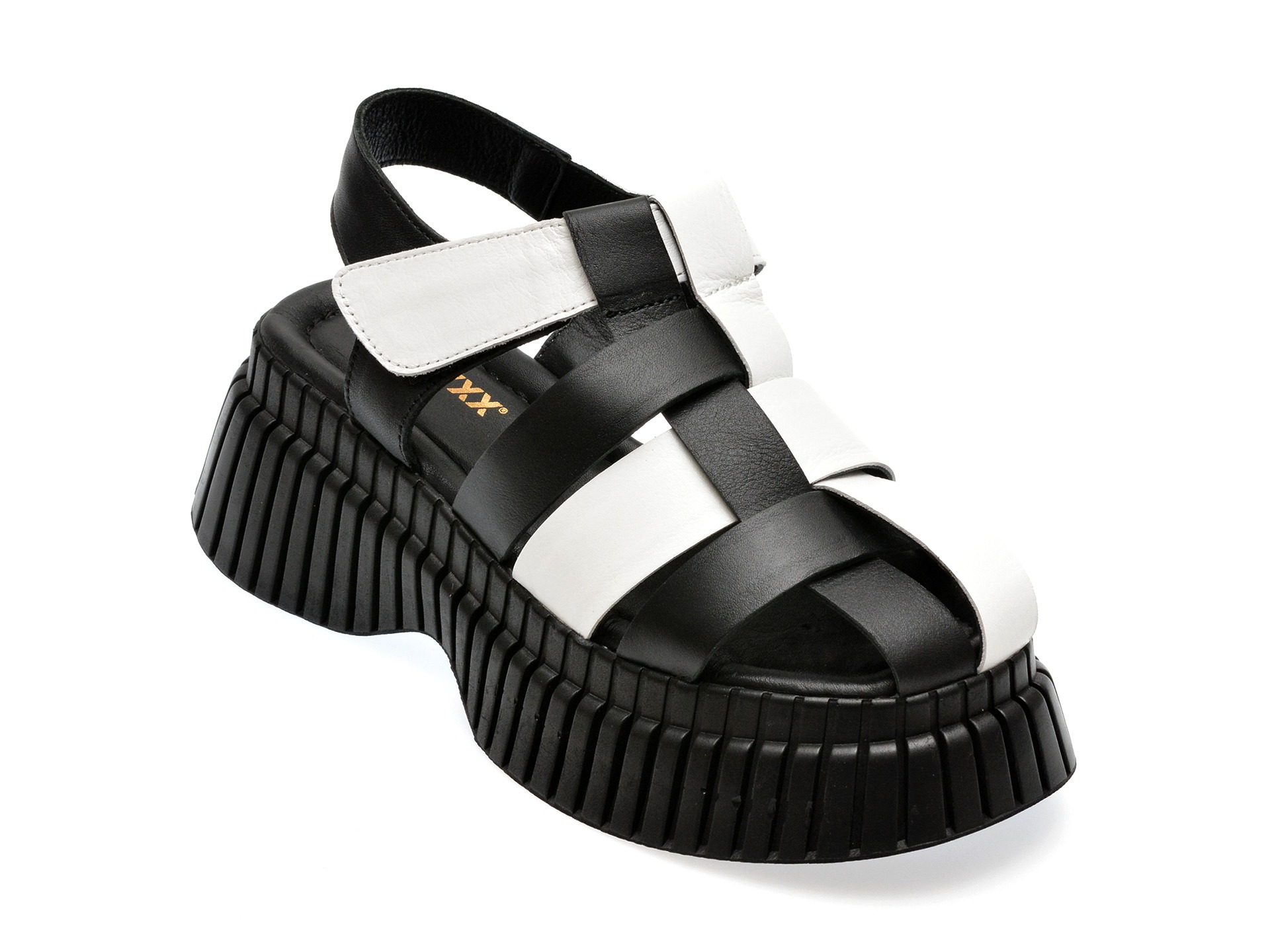 Sandale GRYXX alb-negru, 734041, din piele naturala