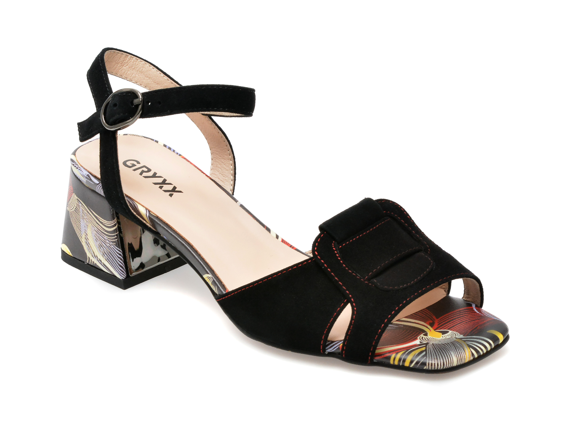 /femei,/femei/sandale dama,/branduri,/branduri/gryxx,/femei/sandale dama/sandale dama cu toc,/colectii – Sandale GRYXX negre, R109, din piele intoarsa