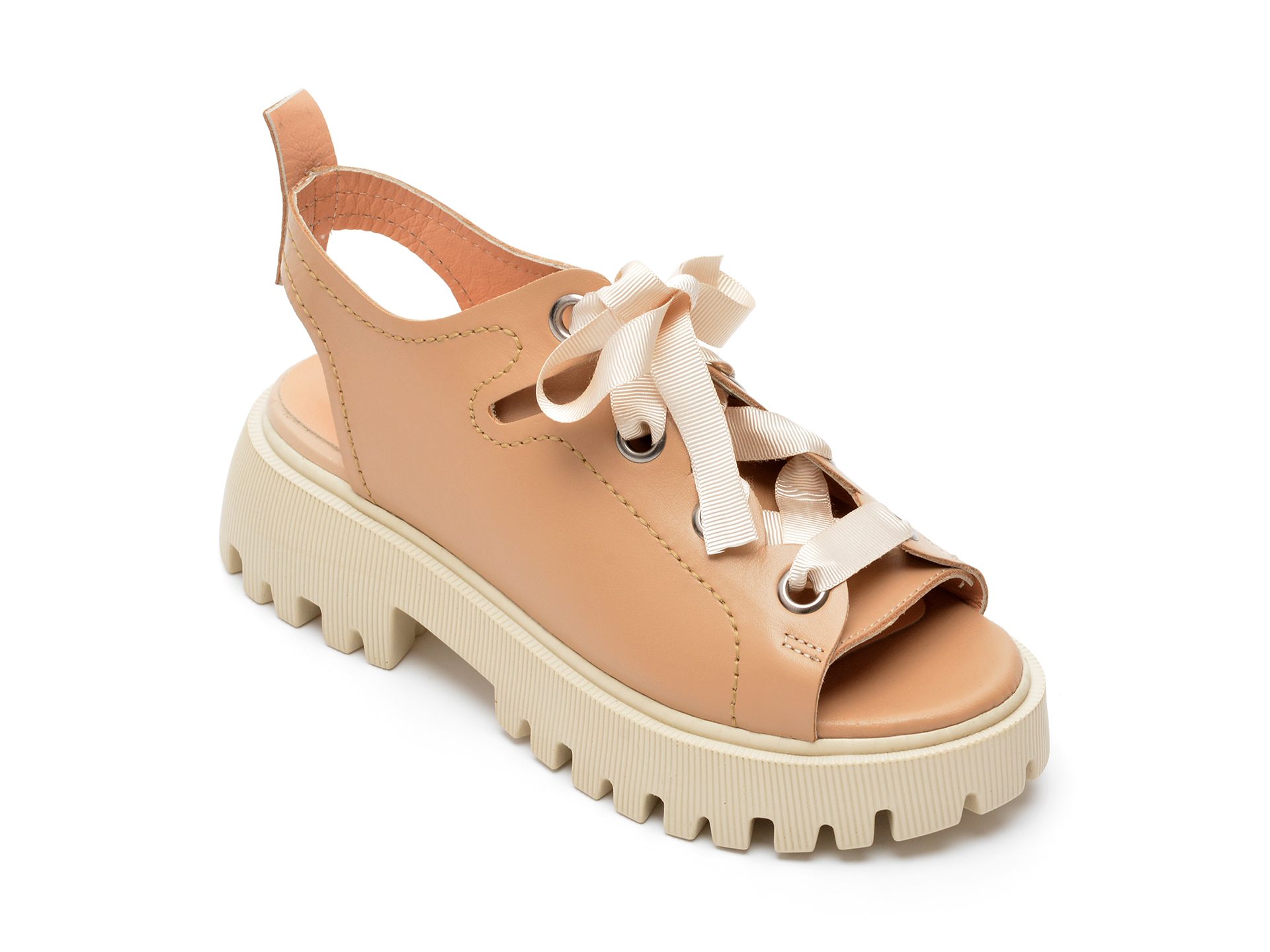 /femei/sandale dama/sandale dama fara toc – Sandale IMAGE bej, 94334, din piele naturala