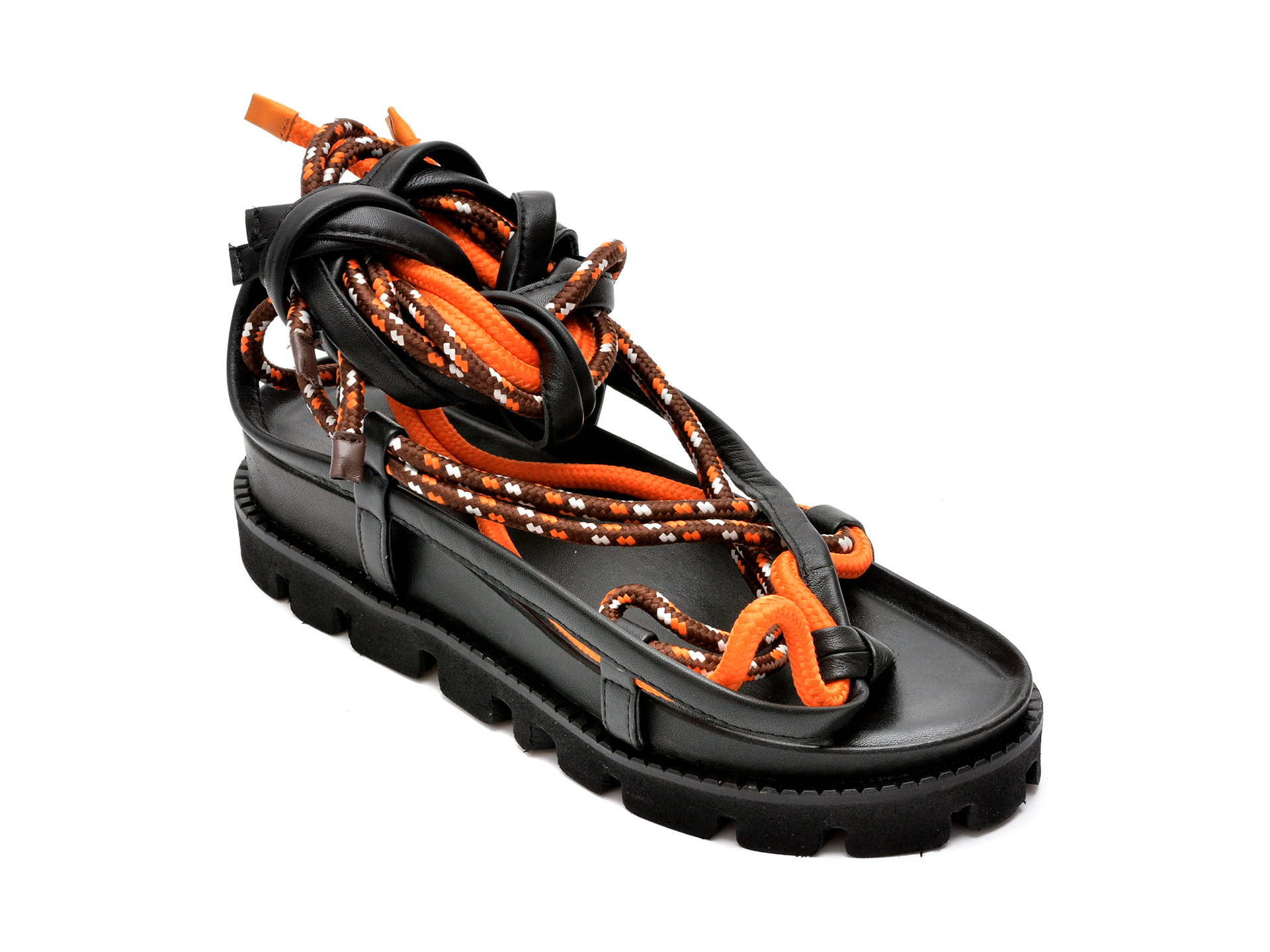 /femei/sandale dama/sandale dama fara toc – Sandale IMAGE negre, 915015, din material textil si piele naturala