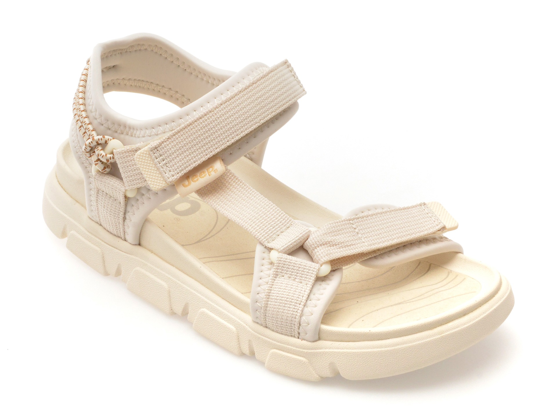 Sandale JEEP albe, L51601A, din material textil , Pentru: Femei , Brand: JEEP , culoare: Alb , Material exterior: Material textil , Material talpa: Poliuretan , Tip inchidere: Velcro . Livrare gratuita pentru comenzile de peste 299 RON acasa si in locker. Retur gratuit de acasa sau in locker.
