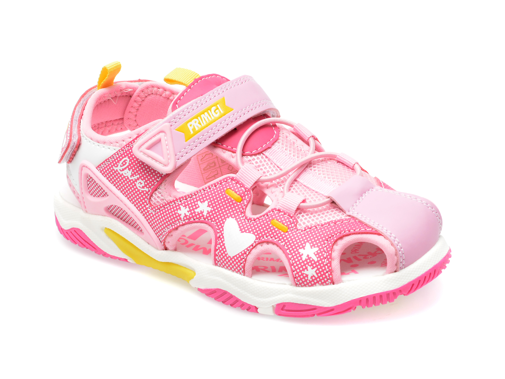Sandale PRIMIGI roz, 39710, din piele ecologica , Pentru: Fetite , Brand: PRIMIGI , culoare: Roz , Material exterior: Piele ecologica , Material talpa: Cauciuc termoplastic , Tip inchidere: Velcro , Greutate: 206 g . Livrare gratuita pentru comenzile de pest 249 RON acasa si in locker. Retur gratuit de acasa sau in locker.