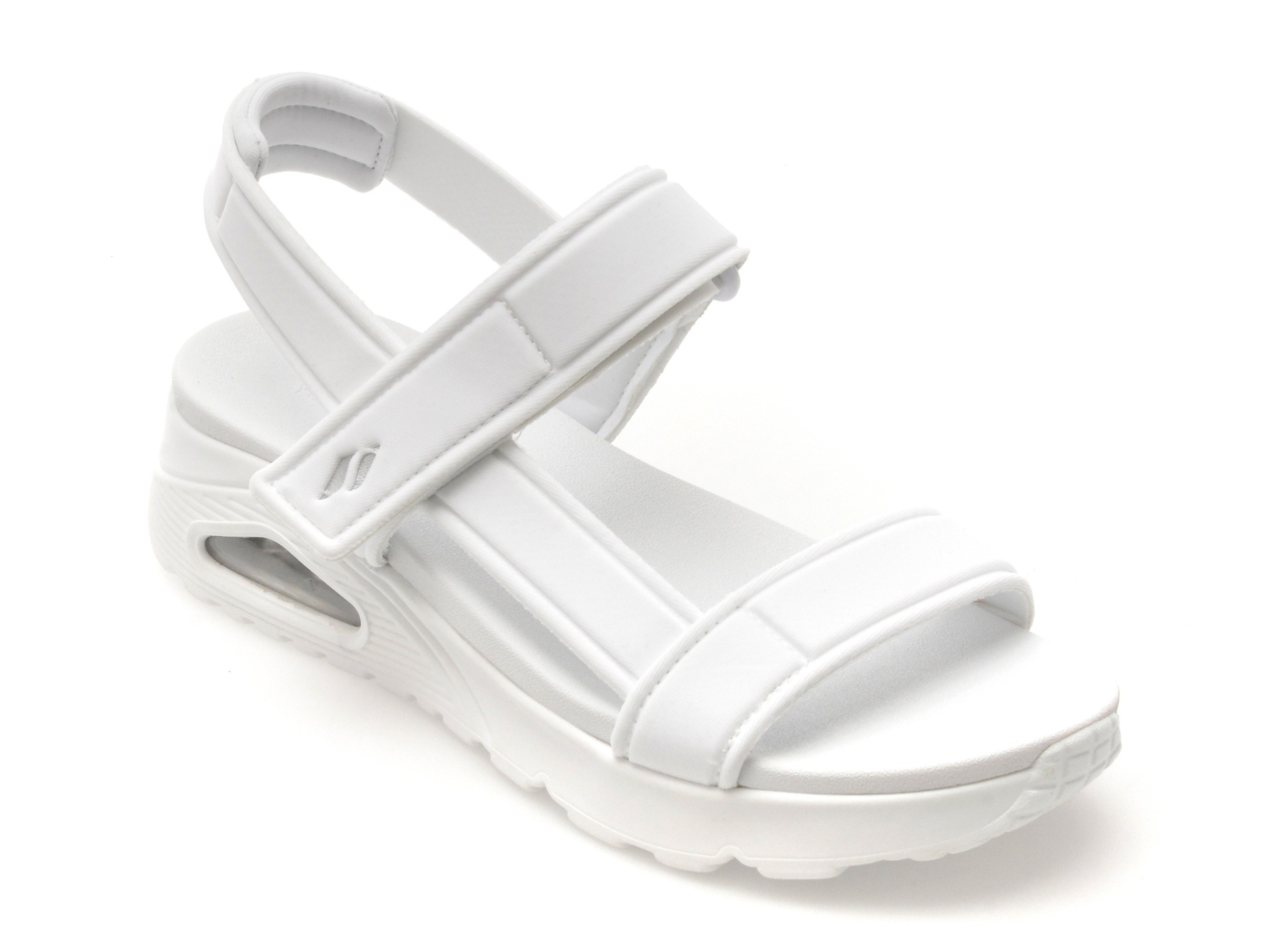 Sandale SKECHERS albe, UNO, din material textil , Pentru: Femei , Brand: Skechers , culoare: Alb , Material exterior: Material textil , Material talpa: Cauciuc termoplastic , Tip inchidere: Velcro . Livrare gratuita pentru comenzile de peste 299 RON acasa si in locker. Retur gratuit de acasa sau in locker.