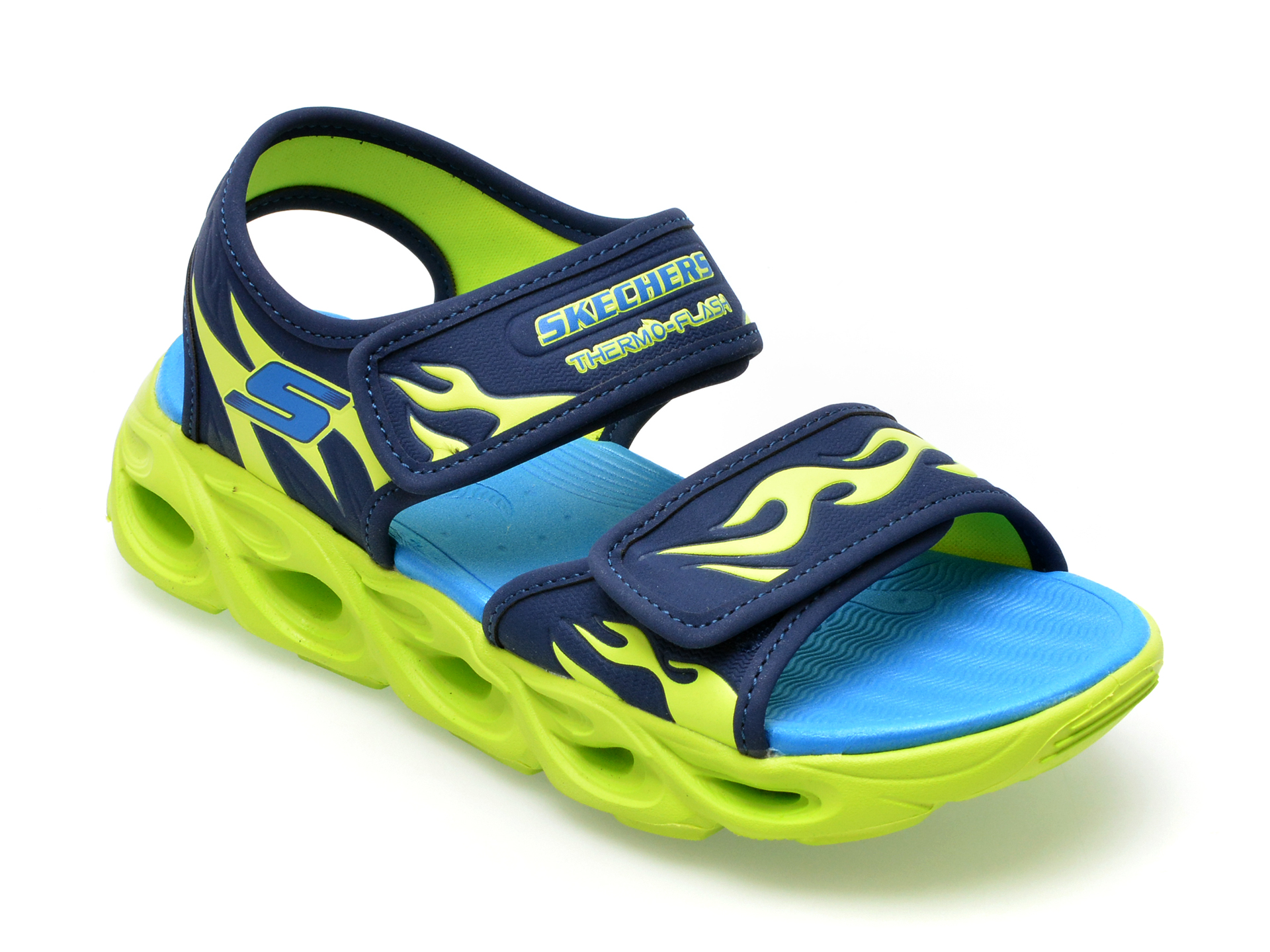 Sandale SKECHERS bleumarin, THERMO-SPLASH, din piele ecologica , Pentru: Baieti , Brand: Skechers , culoare: Bleumarin , Material exterior: Piele ecologica , Material talpa: Poliuretan , Tip inchidere: Velcro , Greutate: 184 g . Livrare gratuita pentru comenzile de pest 249 RON acasa si in locker. Retur gratuit de acasa sau in locker.