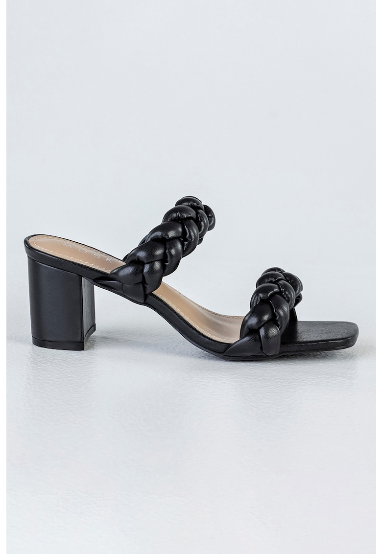 Caracteristici Tip produs: papuci Culoare: negru Material: piele ecologica Stil: casual Imprimeu: uni Tip toc: masiv Detalii: aspect impletit Sistem inchidere: fara inchidere Compozitie Partea superioara: alte materiale Material interior: alte materiale Material talpa: alte materiale Dimensiuni Toc: 6.5 cm