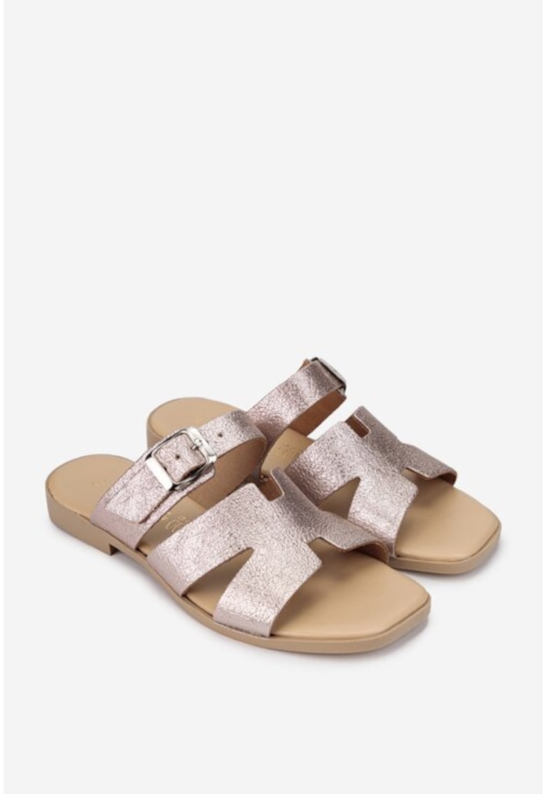 Specification: Sandale stil papuc dama aurii roze din piele sidefata